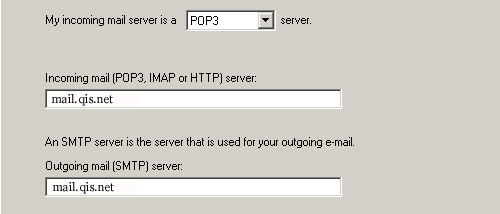 - Under Incoming mail (POP3 or IMAP) server type mail.qis.net
