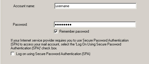 - Do not enable Log on using Secure Password Authentication (SPA)